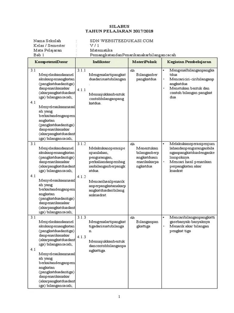 Silabus k13 matematika sd kelas 5 revisi tahun 2020 , yang digunakan saat ini ada yang sudah menerapakan kurikulum 2013.